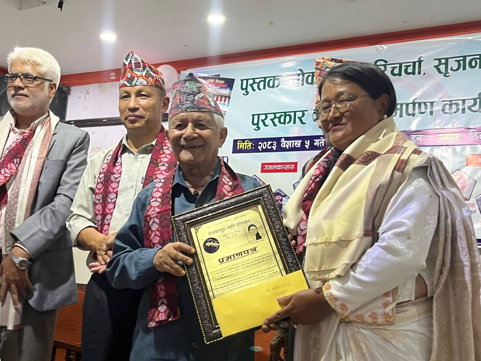 भीमबहादुर स्मृति प्रतिष्ठान नेपालबाट प्राडा.भीम खतिवडा र कविता राई सम्मानित