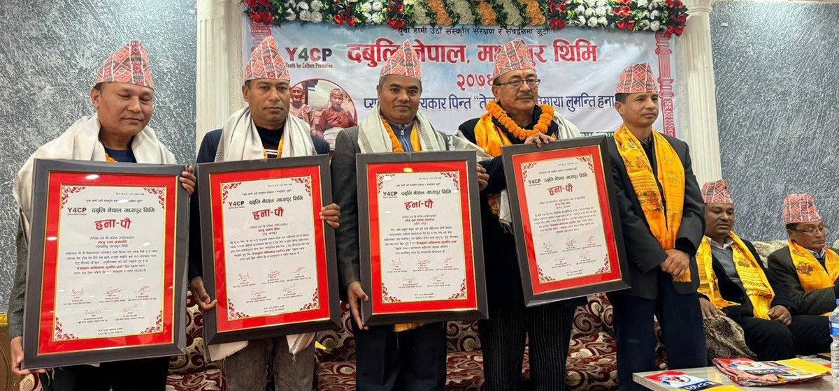 नेपालीमा लिखित ‘सिक्किम यात्राका सेरोफेरो’ र ‘अमूर्त सम्पदाभित्र’ गैरआख्यान कृति हुन् भने नेपाल भाषामा लिखित हेंग्वाः जूम्ह मनू (खाक भइसकेको मान्छे) उपन्यास र कय्ता तंम्ह नेवाः (लङ्गौटी हराएको नेवार) प्रहसन सङ्ग्रह हो । कार्यक्रममा दबुली नेपालले नेपाली भाषामा लेख्ने नेवार समुदायका चार लेखकलाई तेजकृष्ण–नानीमाया लुमना हना (स्मृति सम्मान) प्रदान गर्यो । संस्कृतिविद् लाछीले आफ्ना पिता र माताको स्मृतिमा स्थापना गरेको उक्त सम्मान कास्कीका तीर्थ श्रेष्ठ, भक्तपुरका अभय श्रेष्ठ तथा रत्न प्रजापति र काभ्रेका सूर्य लाकोजूलाई प्रदान गरिएको हो । मेयर श्रेष्ठले उहाँहरूलाई सम्मानपत्र प्रदान गर्नुभयो ।