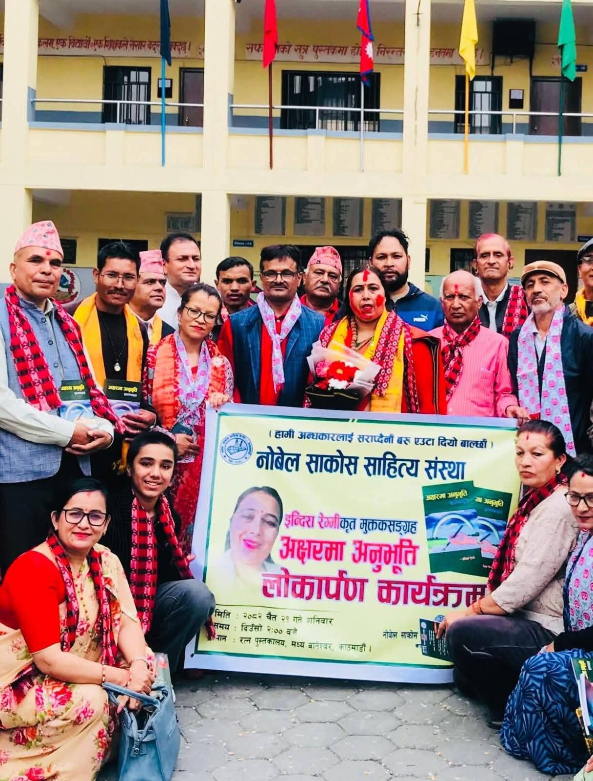 इन्दिरा रेग्मीको पहिलो कृति ‘अक्षरमा अनुभूति’ मुक्तक संग्रह लोकार्पण