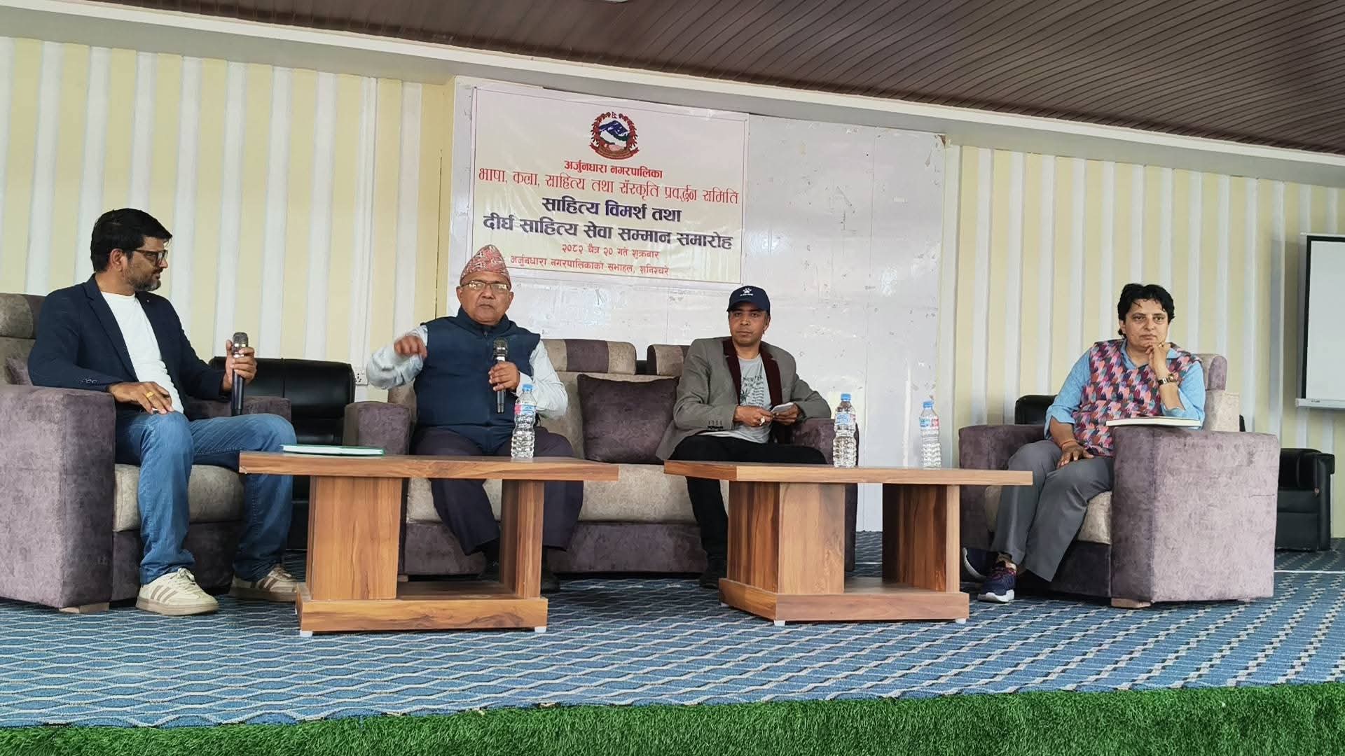 अर्जुनधारा नगरपालिकाले यस नगरपालिका क्षेत्र भित्र रही भाषा,कला,साहित्य तथा संगीतको क्षेत्रमा अनवरत साधनारत व्यक्तित्वलाई नगद सहित प्रत्येक वर्ष´दीर्घ साहित्य सेवा सम्मान´बाट सम्मान गर्दै आएको छ। यस अघि सराेज ओली,विष्णुकुमार भट्टराई,हस्त परियार, कालीबहादुर थापा र कृष्ण बराललाई यो सम्मान प्रदान गरिसकिएको छ।
