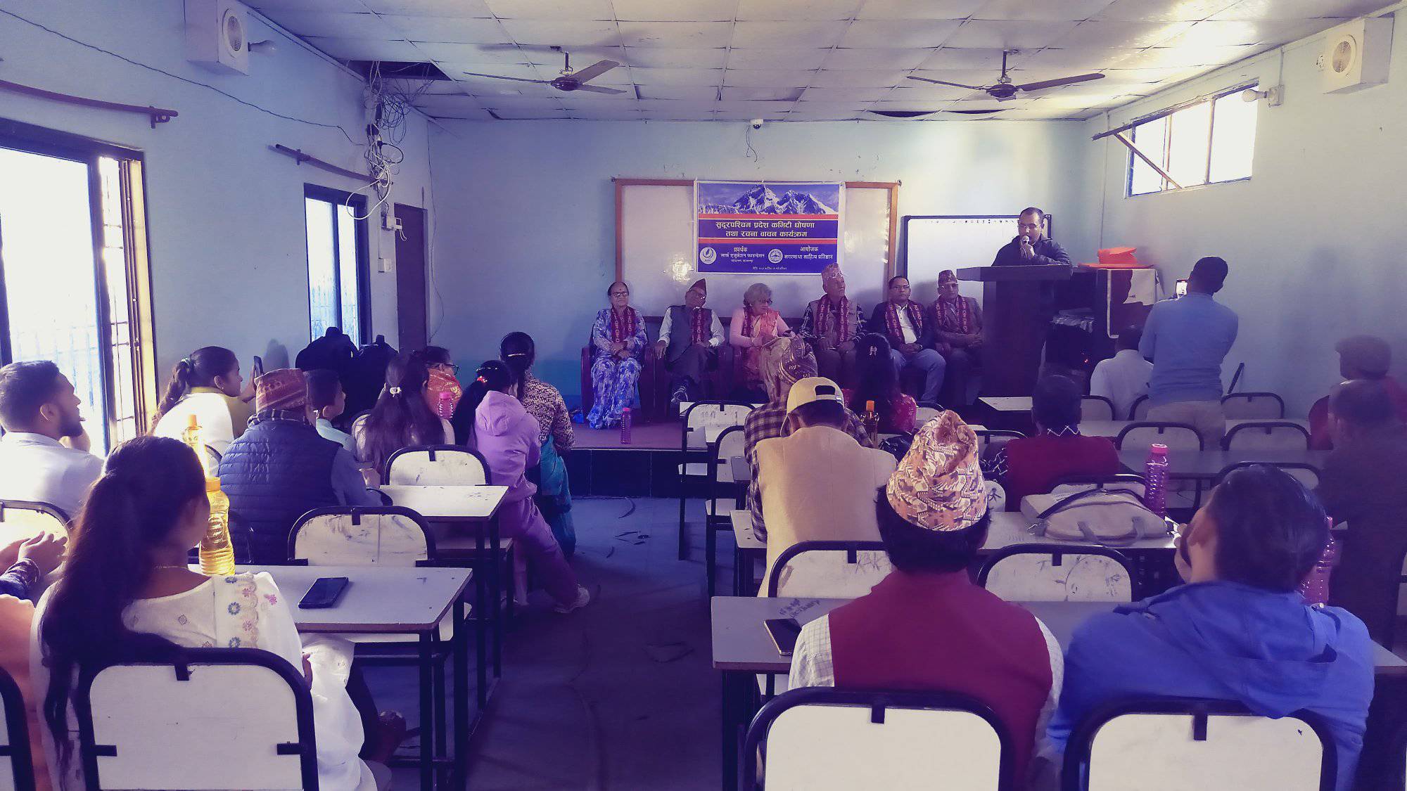 २९ कार्तिक झापा, सगरमाथा साहित्य प्रतिष्ठान सुदूरपश्चिम शाखाद्वारा आयोजित रचना वाचन कार्यक्रम भव्यताका साथ सम्पन्न भएको छ । प्रदेश शाखाका अध्यक्ष खिमानन्द बडूज्यूको अध्यक्षता तथा गुगुल्डि वाङ्मय प्रतिष्ठान कञ्चनपुरका अध्यक्ष वीर बहादुर चन्द विश्रामज्यूको प्रमुख आतिथ्यतामा भएको उक्त कार्यक्रममा सुदूरपश्चिमका चार दर्जन जति साहित्यकारहरूको उपस्थिति रहेको थियो । सरगमाथा साहित्य प्रतिष्ठानका केन्द्रीय महासचिव रोहित कुवँरज्यूले नव गठित कमिटीलाई बधाई ज्ञापन गरेपछि रचना वाचनको कार्यक्रम सुरु भएको थियो ।फोटो सार्क एजुकेशन फाउण्डेसनको सभाकक्षमा सम्पन्न उक्त कार्यक्रममा मानस खण्ड संविधान सभा सदस्य मा. आनन्दी पन्त, फाउण्डेसनका अध्यक्ष नारा जोशी, साहित्यकार कृष्ण दत्त चटौत कान्त, प्रलेस केन्द्रीय सदस्य रमेश पन्त मीतबन्धुले विशिष्ट आतिथ्यता ग्रहण गरेका थिए । प्रदेशका सचिव बिरेन्द्र चन्दले सञ्चालन गरेको उक्त कार्यक्रममा साहित्यकार कल्यान ओझा, हेमबाबु लेखक, प्रजापती नेगी, पूर्ण मल्ल, लख्खु सिंह, गंगा प्रसाद रिजाल, नवराज भट्ट, तुलसी प्रसाद पण्डित, लछिधन अधिकारी, अम्बादत्त जोशी, नारायण लम्साल, मधु हमाल, सत्यराज जोशी, सन्दिप समर्पण, बबिता कार्की, गंगा विष्ट, चाँदनी विष्ट, काँजल न्यौपाने, हिरा भट्ट जोशी, सन्तोष भट्ट, योगेश भट्ट, दिनेश ओझा, प्रकाश भट्ट, निर्मला पन्त, पूजा धामी, लगायतका साहित्यकारहरूको उपस्थिति रहेको कुरा स्रष्टा कविराज भट्ट विलौनाले जानकारी दिनु भएको छ ।