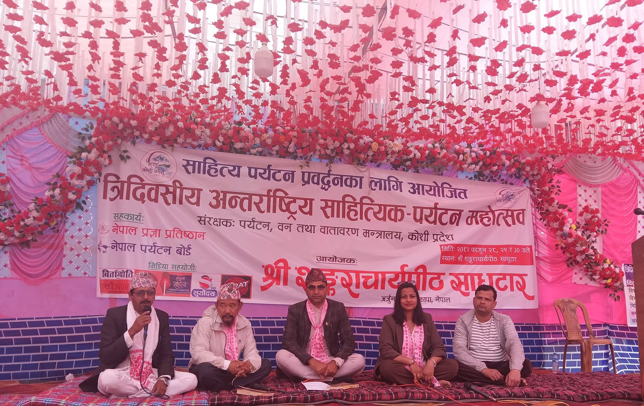 झापा ३० फागुन/झापाको अर्जुनधारा-१ साधुटारस्थित श्री शंकराचार्यपीठ वेद वेदाङ्ग संस्कृत पाठशाला तथा सिद्धेश्वरी कामदा गौशालामा त्रिदिवसीय अन्तर्राष्ट्रिय साहित्यिक पर्यटन महोत्सव सम्पन्न गरिएको छ ।