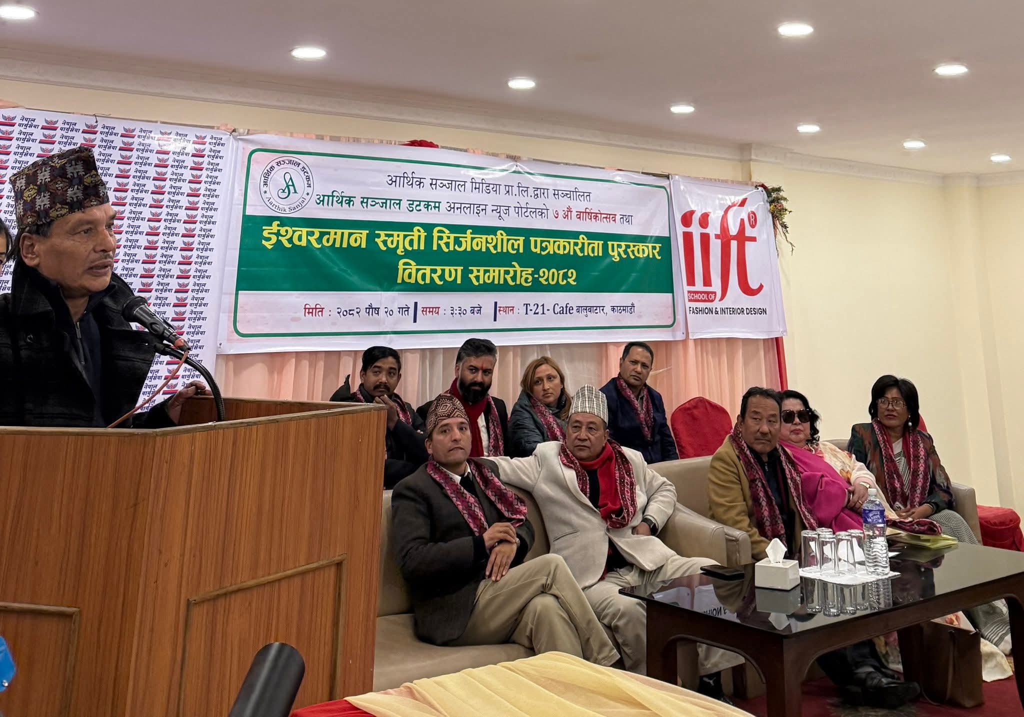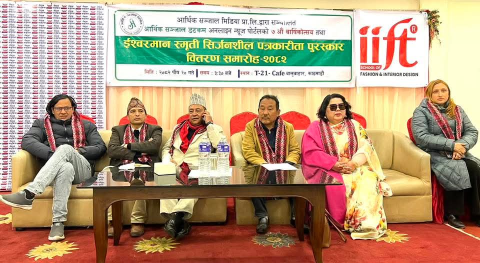 आर्थिक सञ्जाल मिडिया प्रा.लि. द्वारा सञ्चालित ‘आर्थिक सञ्जाल डटकम’ अनलाइन पत्रिकाको सातौँ वार्षिकोत्सवका अवसरमा आइतबार नेपाल प्रज्ञा–प्रतिष्ठानका कुलपति भूपाल राईको प्रमुख आतिथ्यतामा आयोजित समारोहमा कुलपति राइले सो पुरस्कार उनलाई हस्तान्तरण गरे ।