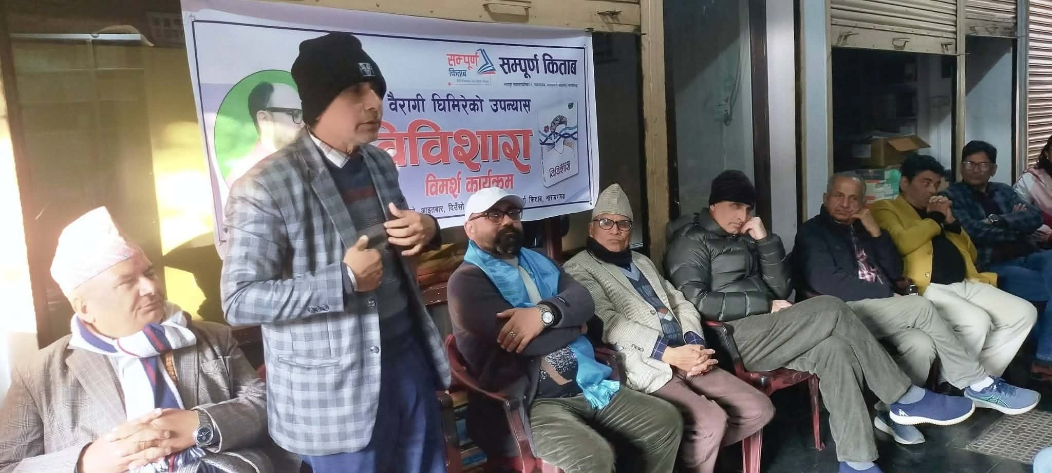 सम्पूर्ण किताब नारायणगढको आयोजनामा आइतबार समालोचक उदय अधिकारी र धनराज गिरीले उपन्यासमाथि समीक्षात्मक टिप्पणी गर्नुभएकाे थियाे ।